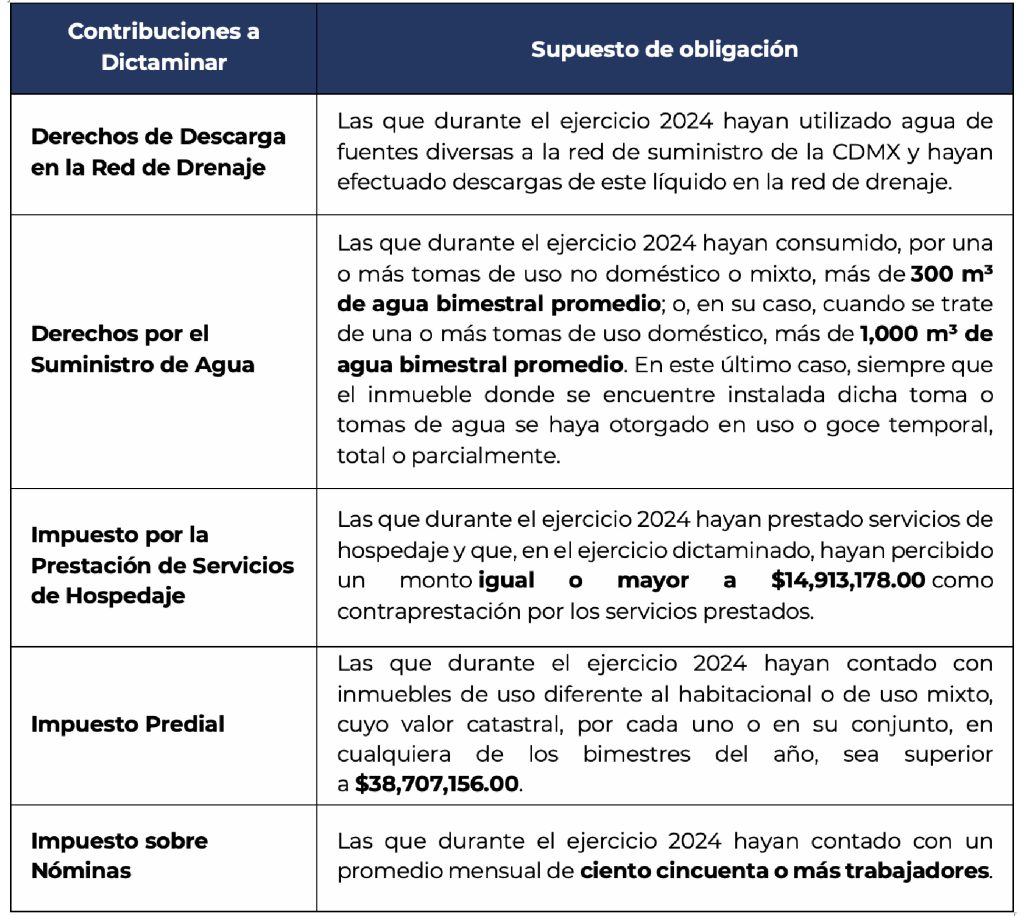 Conforme a las Reglas de Carácter General para el Dictamen del Cumplimiento de Obligaciones Fiscales 2025, emitidas por la Secretaría de Administración y Finanzas de la Ciudad de México el pasado 14 de enero, los contribuyentes obligados, o que opten por dictaminar el cumplimiento de sus obligaciones fiscales, deberán presentar el Aviso para Dictaminar a más tardar el 15 de marzo de 2026.