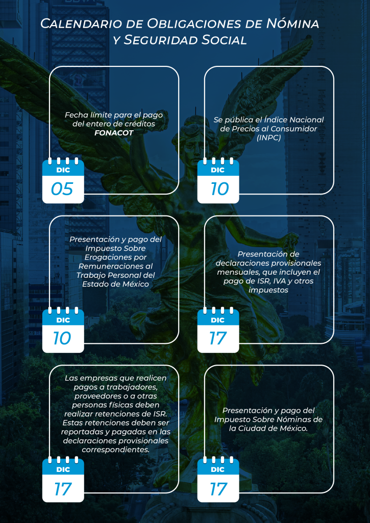 Nuestros especialistas del área de Nóminas y Auditoría para Seguridad Social e INFONAVIT, Contribuciones Locales se encuentran a sus órdenes para ayudarle a resolver dudas o cumplir con las disposiciones señaladas en el presente calendario.