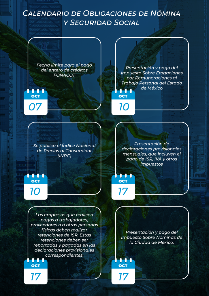 Nuestros especialistas del área de Nóminas y Auditoría para Seguridad Social e INFONAVIT, Contribuciones Locales se encuentran a sus órdenes para ayudarle a resolver dudas o cumplir con las disposiciones señaladas en el presente calendario.