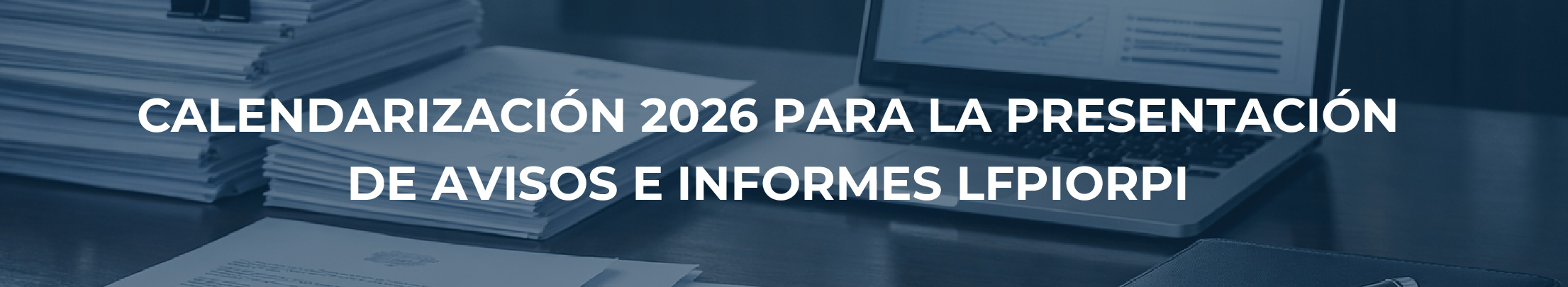 Informa La Secretaria de Hacienda y Crédito Publico a los sujetos obligados que realizan Actividades Vulnerables, la calendarización oficial para la presentación de los Avisos de actos u operaciones, así como de los Informes en Cero e Informes 27 Bis, previstos en los artículos 25 y 27 Bis de las Reglas de Carácter General de la LFPIORPI, correspondientes al ejercicio 2026.