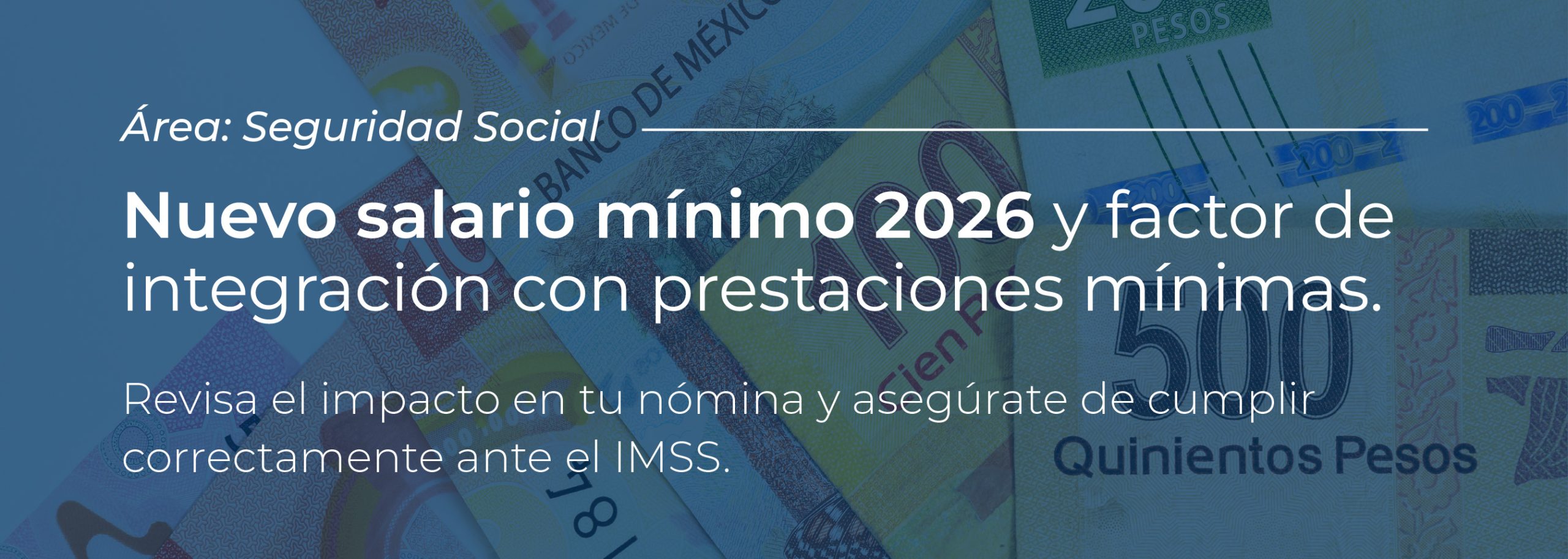 NUEVO SALARIO MÍNIMO 2026 Y FACTOR DE INTEGRACIÓN CON PRESTACIONES MÍNIMAS