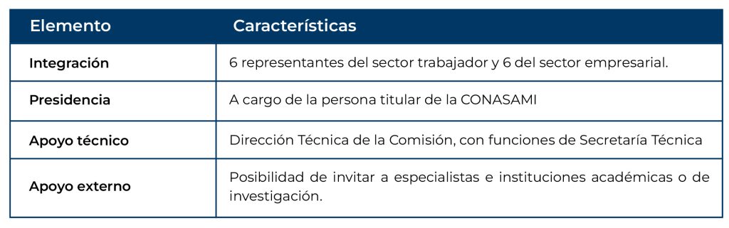 La Comisión Consultiva se constituirá bajo un esquema de representación equilibrada, conforme a los principios de diálogo social que rigen a la CONASAMI.