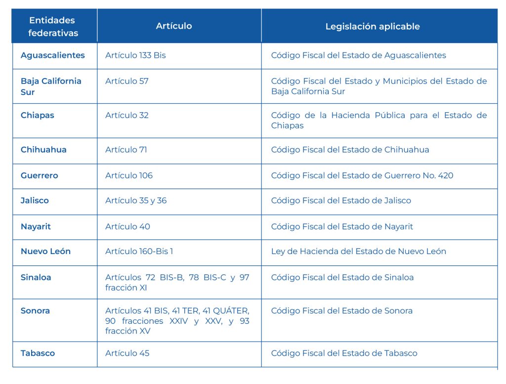 Cabe señalar que, en los estados de Baja California, Colima, Durango, Guanajuato, Hidalgo, Michoacán, Morelos, Querétaro, Tamaulipas y Tlaxcala, la normativa vigente no contempla la presentación del dictamen del ISN, ni de forma obligatoria ni opcional.