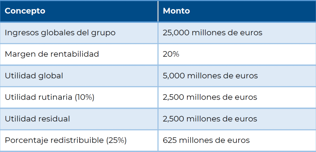 Esto significa que, bajo el Pilar 1, México podría obtener el derecho de gravar aproximadamente 25 millones de euros de utilidades, aun cuando la empresa no cuente con un establecimiento permanente en el país.