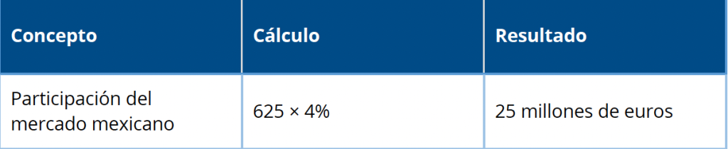 Si México representa el 4% de las ventas globales del grupo, el monto potencialmente asignable sería el siguiente: