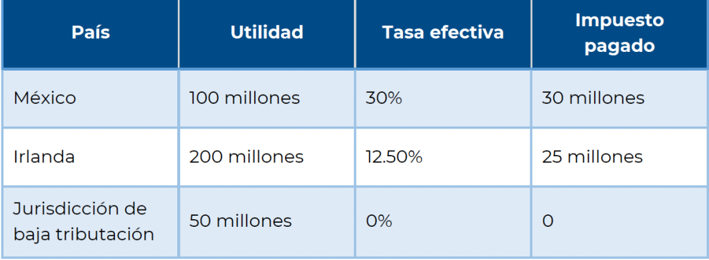 De acuerdo con lo anterior, el Pilar 2 establece que las utilidades de las subsidiarias de grupos multinacionales deben tributar al menos a una tasa efectiva del 15%. En caso de que la tasa efectiva en una jurisdicción sea inferior a dicho nivel, se genera un impuesto complementario (top-up tax) que deberá pagarse para alcanzar el mínimo establecido.