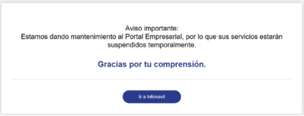 No estará disponible el acceso al Portal Empresarial. Se suspende la atención telefónica (INFONATEL). No habrá servicio presencial en delegaciones.