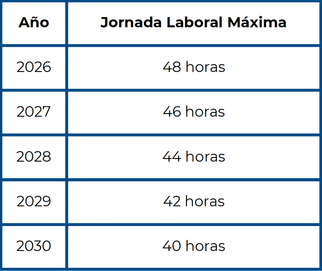 La reforma establece un nuevo límite constitucional para la duración de la jornada de trabajo y fija un proceso de implementación gradual que culminará con una jornada máxima de 40 horas semanales.